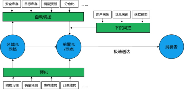 對于下沉可能出現(xiàn)的逆向情況,菜鳥也進(jìn)行了提前預(yù)測,大數(shù)據(jù)算法下沉風(fēng)控模型會依據(jù)消費(fèi)者畫像、貨品畫像、退款模型,綜合給出退款概率評分,高風(fēng)險訂單不下沉,低風(fēng)險訂單下沉,做到時效和成本的最優(yōu)平衡。