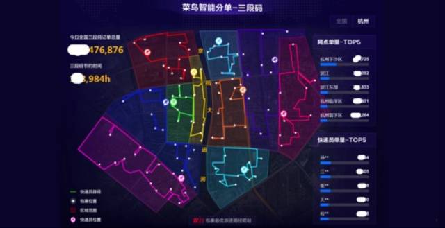 菜鳥可以精確的為每個訂單分配最佳快遞員,并同二段碼一樣,提前將快遞員信息打印在面單上。到達(dá)末端網(wǎng)點(diǎn)時,快遞員不再通過面單上的詳細(xì)地址挑選出屬于他派送的包裹,而是根據(jù)面單上打印的"三段碼",進(jìn)行快速分揀。
